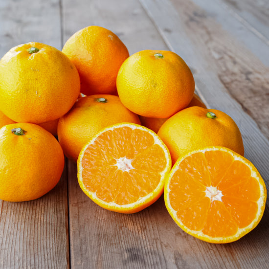 今年は新たに愛媛県・大三島のゆら早生みかんが登場です。10月ごろから出荷が始まり、爽やかな酸味と果汁たっぷりの早生品種。 手摘みで丁寧に収穫され、島の豊かな自然と温暖な気候のもとで育まれています。